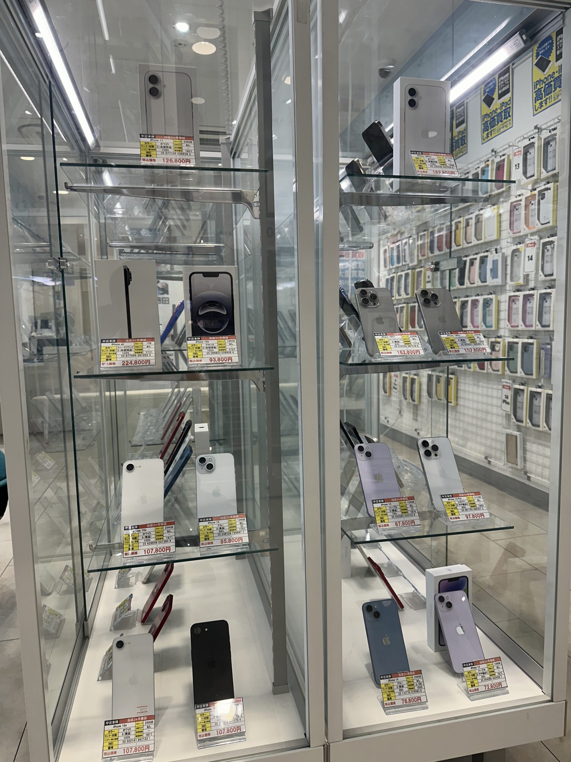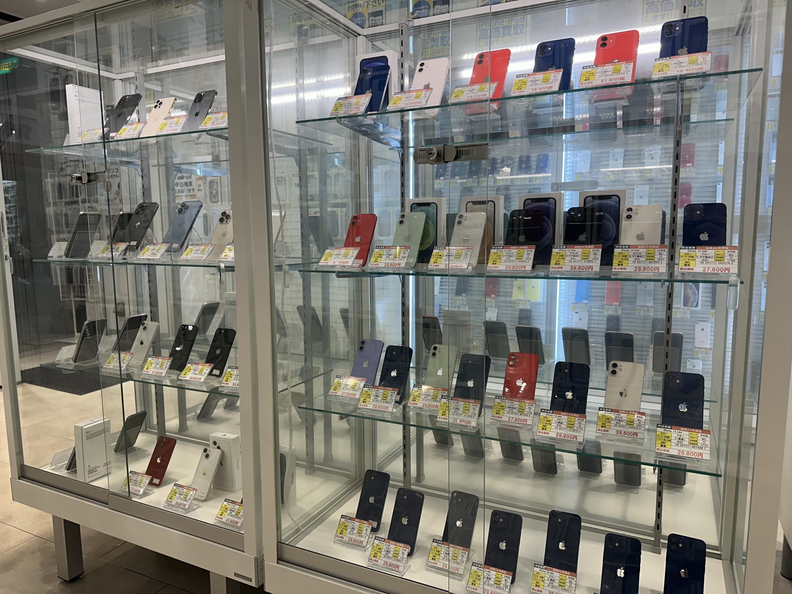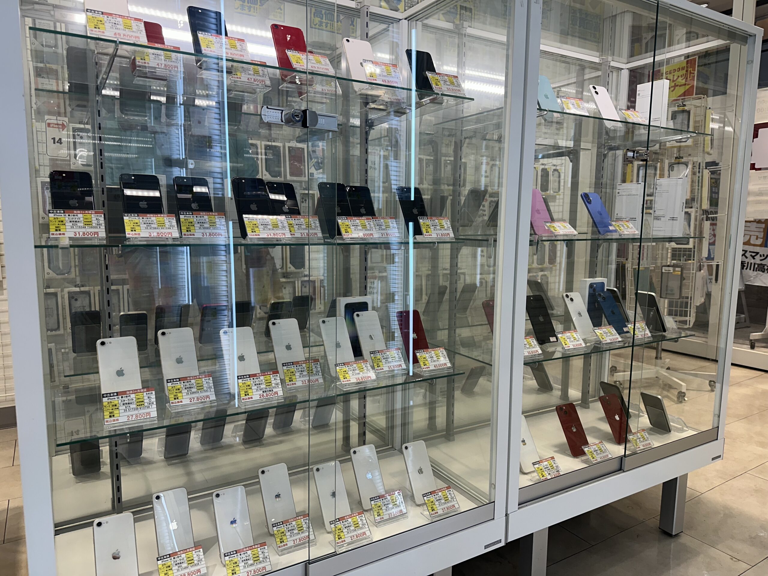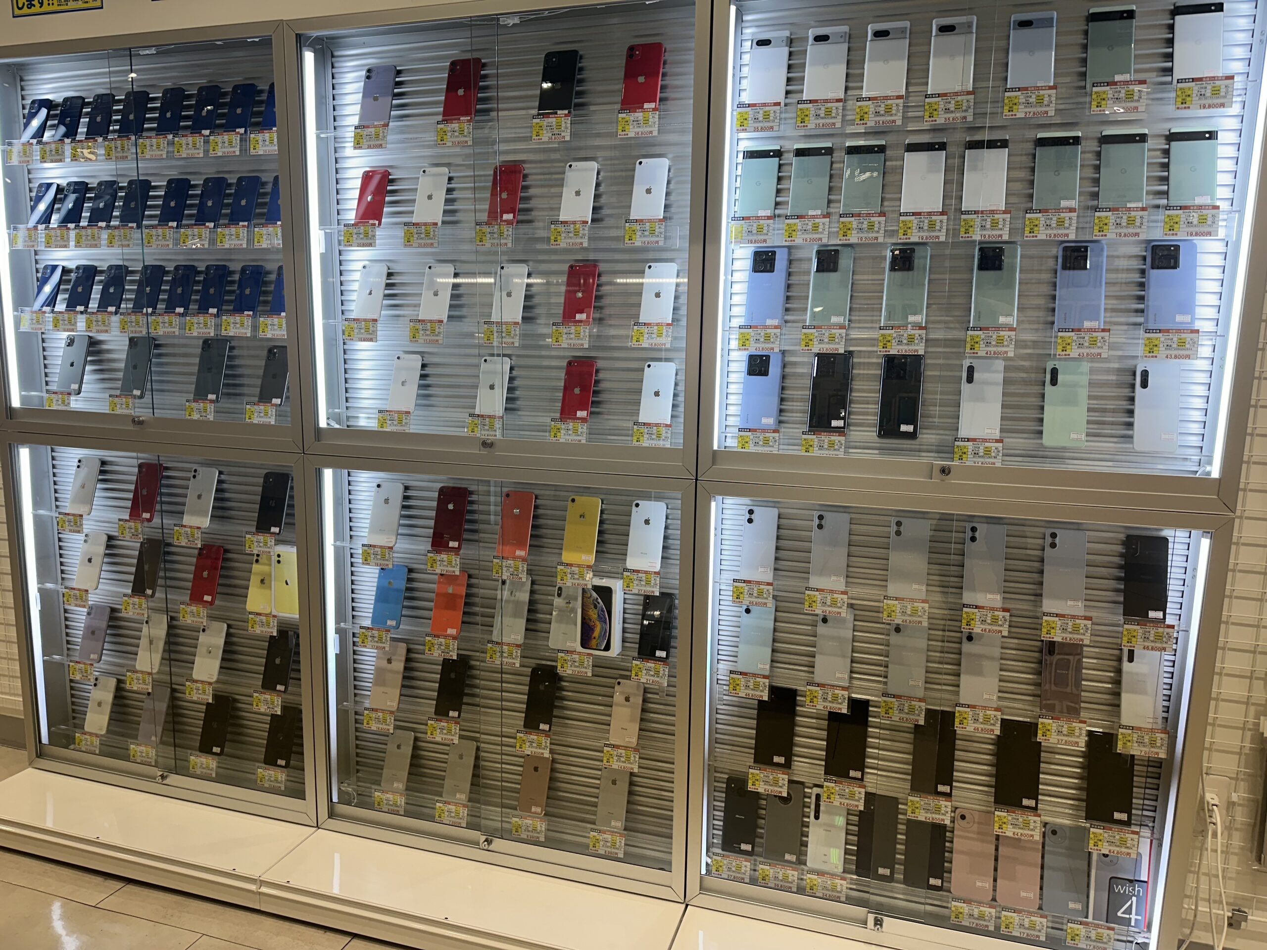 iPhone・Androidあわせて 中古スマホ・未使用品 250台以上を店頭展示中。