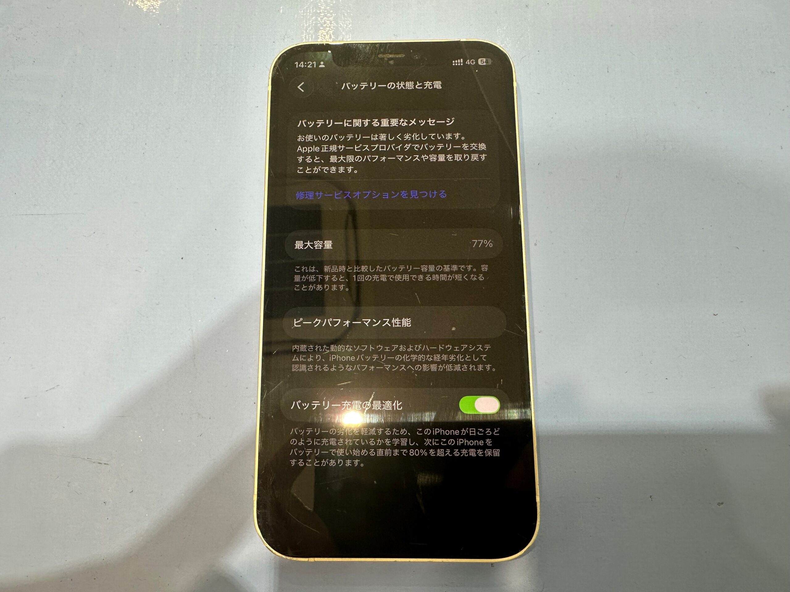 するとバッテリーの最大容量が 77% に落ちていることがわかります。