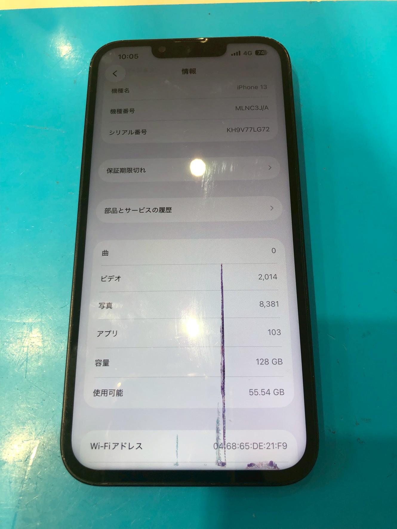 本日はiPhone13の液晶の不良でお客様にご来店いただきました。 最初に状態確認です。 画像のように画面トラブルの中には次のように不良部分が一部だけというケースがあります。 ・画面の端に黒いシミがある・画面の一部に線が …投稿日:2026-03-07