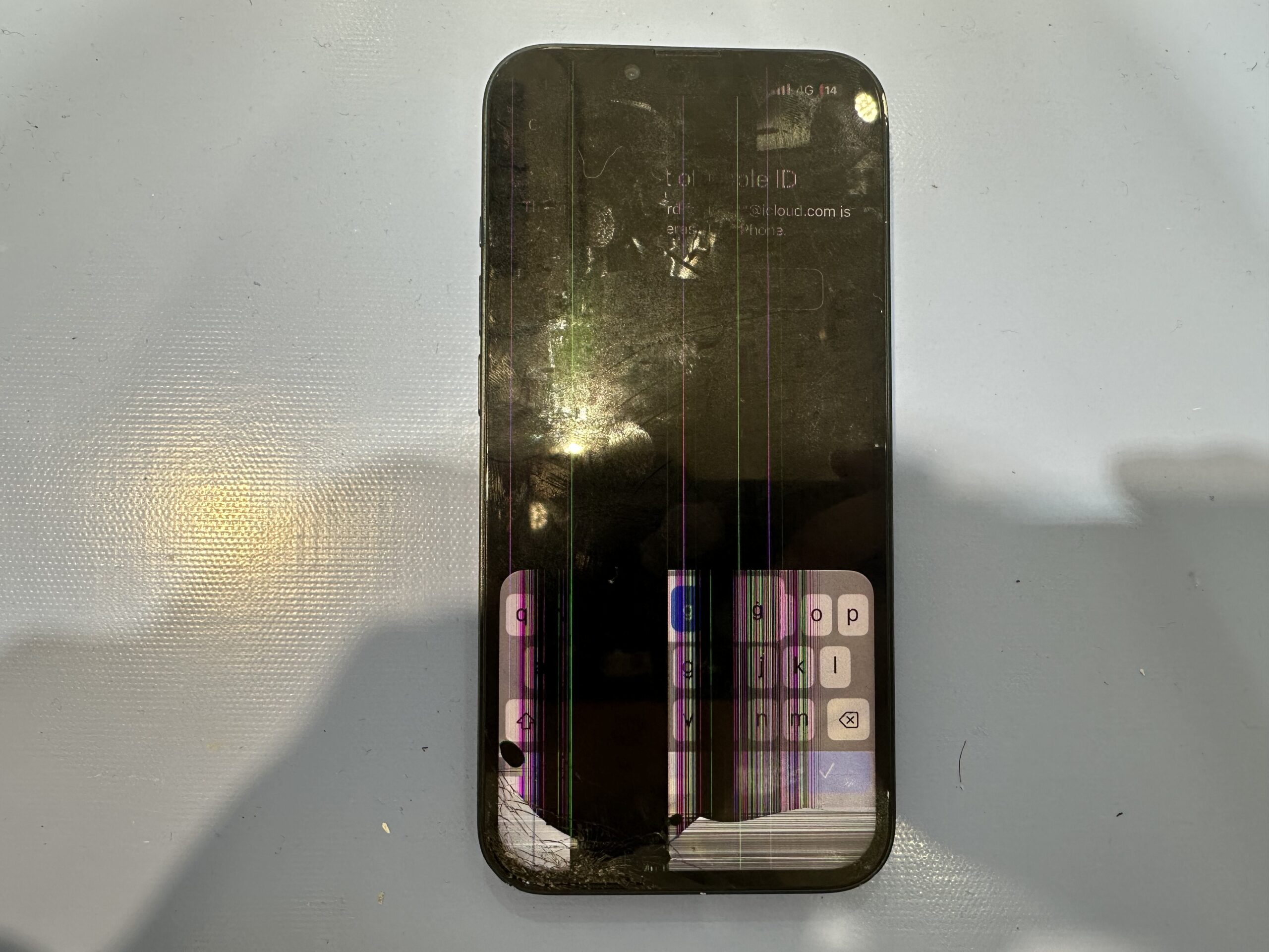 スマップル香川高松店です。 本日は、iPhone14の画面修理でお客様にご来店いただきました。 最初に状態確認です。 落下の衝撃で画面のほとんどが縦線が入ってしまい操作ができない状態でした。 ゴーストタッチの症状が出てい …投稿日:2026-03-21